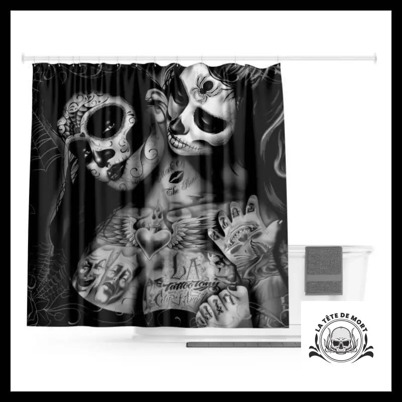 Il est difficile de résister à l'allure sensuelle et intimidante qui se dégage de cet univers de bain, invitant à la détente dans une eau chaude et voluptueuse. Le style artistique du tatouage se reflète dans l'élégance du rideau de douche représentant une femme mexicaine à tête de mort.