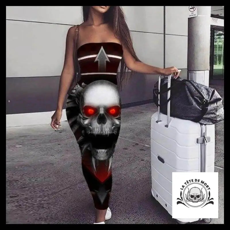 Avec cette robe à l'effigie d'un crâne fendu, vous serez imparable ! Adoptez un style intimidant, qui montre que vous êtes la force dominante du jour. La tête de mort est un symbole qui ne laissera personne indifférent.