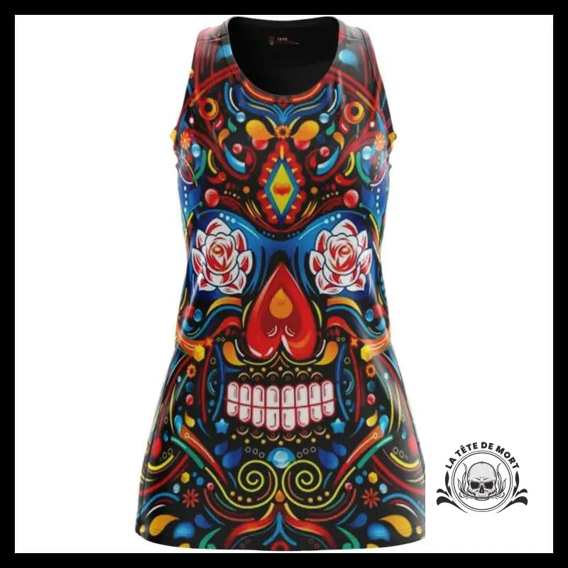 Si vous êtes passionné(e) par les vêtements colorés et les motifs de têtes de mort, cette robe crâne mexicain pourrait être votre choix parfait. Cette robe offre un mélange de couleurs saisissant qui ne manquera pas de vous séduire avec son design sublime et diabolique.