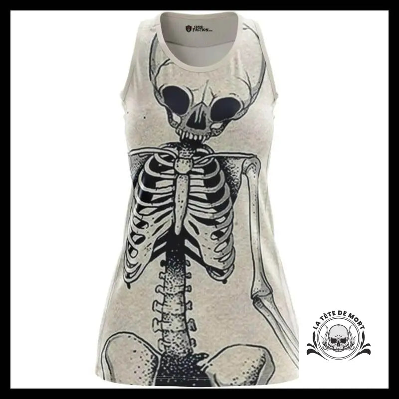 Adoptez un style unique cet été avec cette robe courte à motif de squelette extraterrestre en noir et blanc. Elle vous donnera un look démoniaque qui ne manquera pas de faire tourner les têtes.