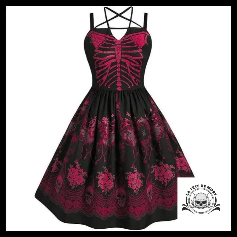Si vous cherchez une tenue pour un bal costumé d'Halloween, cette robe squelette rouge pourrait être parfaite pour vous. Avec un corset qui met en valeur des motifs mortels, cette robe allie raffinement et mystère pour un look élégant et effrayant. N'hésitez pas à l'essayer pour vous démarquer lors de votre prochaine soirée costumée sur le thème d'Halloween.