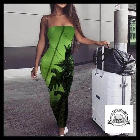 Porte fièrement cette élégante robe pirate à tête de mort, conçue pour flatter votre silhouette. Sois prêt à affronter les assauts de pirates en quête de ta nouvelle tenue !