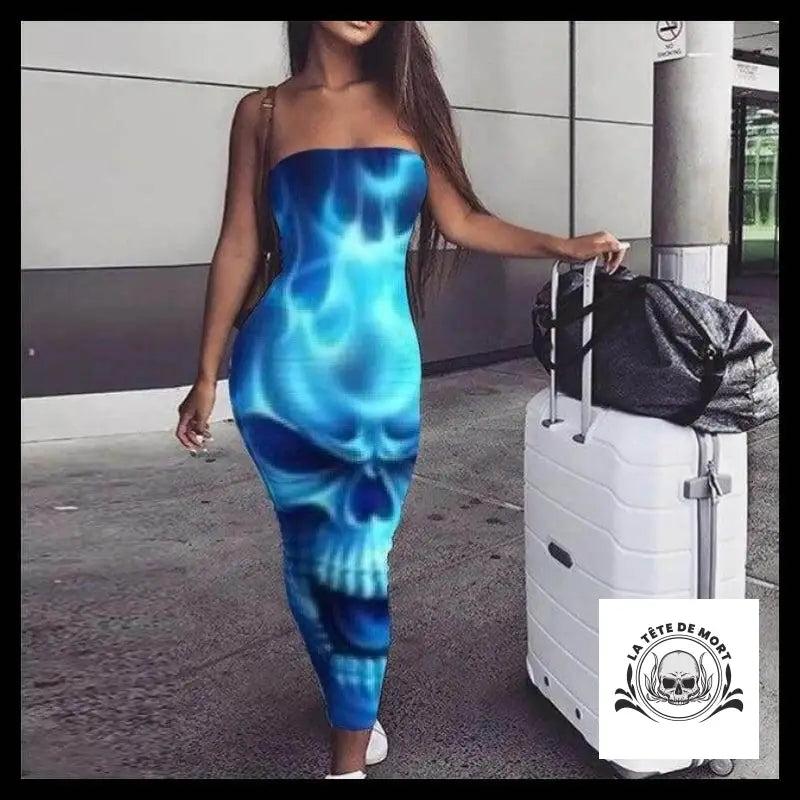 Il ne faut pas se méprendre, ces formes ne sont pas des nuages ! Si vous êtes un(e) romantique ensorcelé(e), vous avez peut-être déjà envoyé un malheureux directement aux flammes de Satan. Dans ce cas, cette robe futuriste à l'imprimé tête de mort pourrait être faite pour vous !