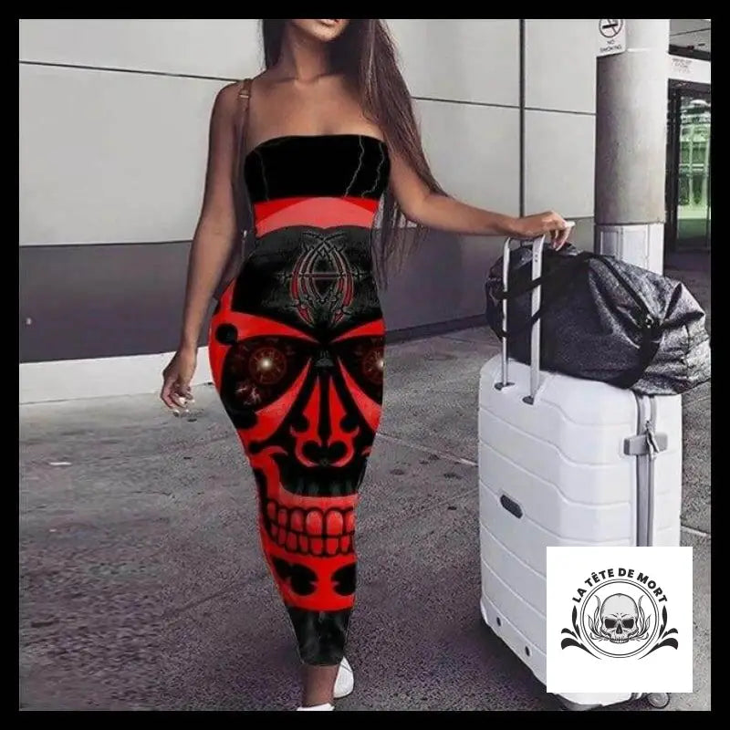 Cette robe rouge à la tête de mort est un chef-d'œuvre de contraste grâce à son design mandala. Elle a été conçue pour te faire briller en tant que diablesse avec cette tête de mort effrayante.