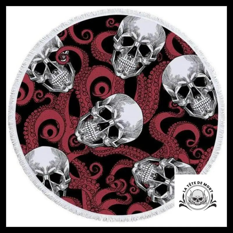 Soyez vigilant envers le Krakenn qui a quitté les profondeurs des eaux scandinaves pour s'approcher des côtes animées de baigneurs et de petits bateaux servant d'apéritifs. Si vous cherchez une serviette originale avec un motif de crâne de pieuvre, celle-ci est faite pour vous.