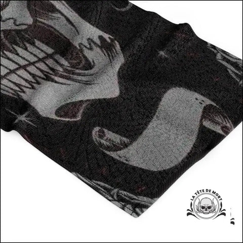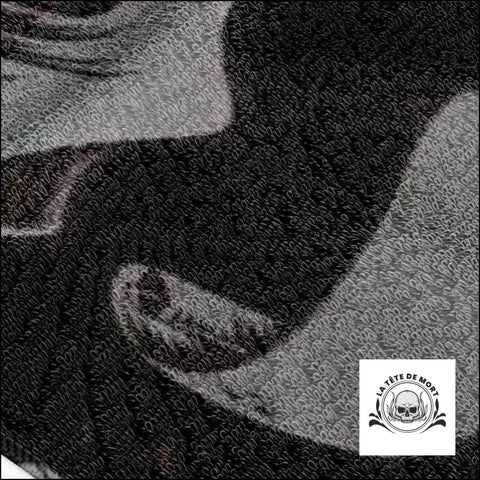 Cette serviette de plage au design original présente une tête de mort effrayante qui ne manquera pas de captiver l'attention. Le regard profond de ce crâne unique pourrait bien faire sursauter les passants les plus sensibles !