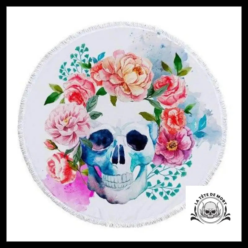 Cette serviette ronde arbore un motif de tête de mort entourée de roses, offrant un contraste étonnant entre la délicatesse florale et la symbolique de la mort. Les tons clairs et doux de la serviette se marient harmonieusement avec l'esthétique mortuaire, créant une ambiance unique et fascinante. Profitez de cette serviette pour ajouter une touche de personnalité à votre collection de linge de maison, ou pour apporter une touche d'originalité à vos sorties à la plage ou à la piscine.