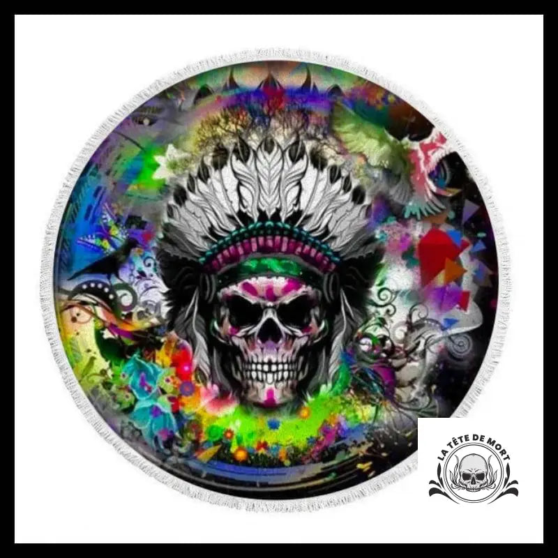 Cette serviette colorée à l'effigie d'une tête de mort indienne présente une multitude de motifs vibrants et uniques. La représentation du chef de tribu squelette apporte une touche de guerrier à cette pièce. L'ensemble est mis en valeur dans un univers psychédélique et coloré qui ne manquera pas d'attirer tous les regards.