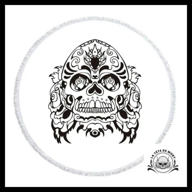 La serviette de plage noire et blanche à motif de tête de mort présente un design impeccable qui attire l'attention. Elle est décorée d'un motif représentant une divinité mystérieuse tracé en noir sur un fond blanc, créant un contraste saisissant. Cette serviette est idéale pour faire sensation sur le sable blanc grâce à son effet visuel exceptionnel.