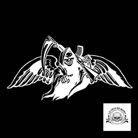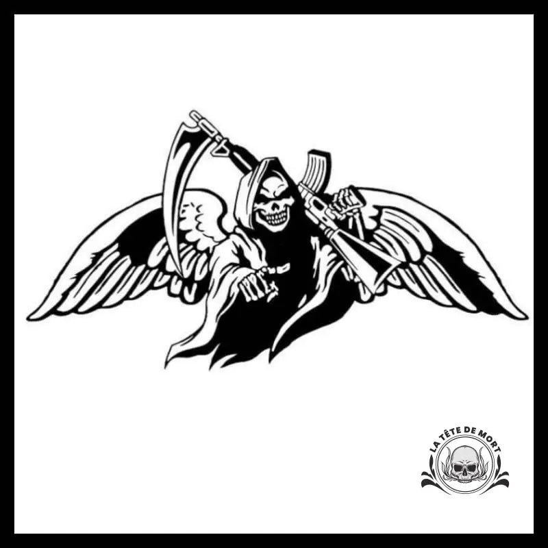 Ne te laisse pas tromper par les ailes d'ange de cette faucheuse démoniaque autocollante. Bien qu'elle puisse sembler innocente, elle est impitoyable et se dirige déjà vers vous, armée de sa faux et d'une mitrailleuse redoutable.