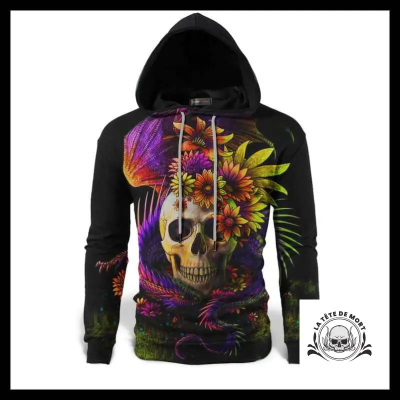 Vous serez séduit par ce magnifique Sweat à l'image d'un crâne entouré d'un dragon en plusieurs couleurs. Le message "Il ne faut jamais défier un dragon... JAMAIS" renforce l'effet saisissant de ce vêtement.