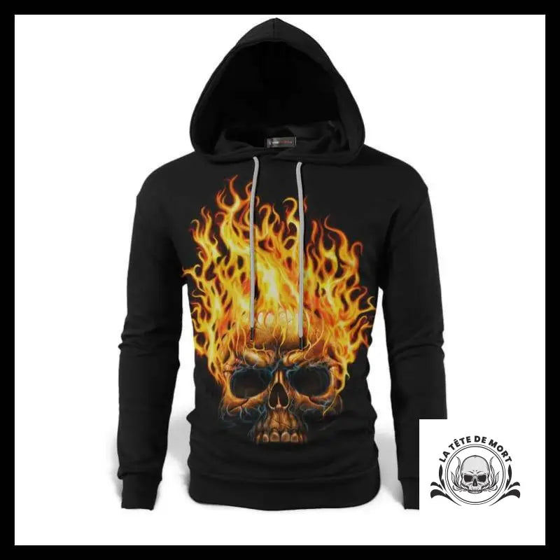 Vivez intensément chaque instant avant que la mort ne vous rattrape ! Célébrez la vie avec un style infernal en arborant ce sweat à l'effigie d'une tête de mort enflammée.