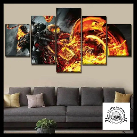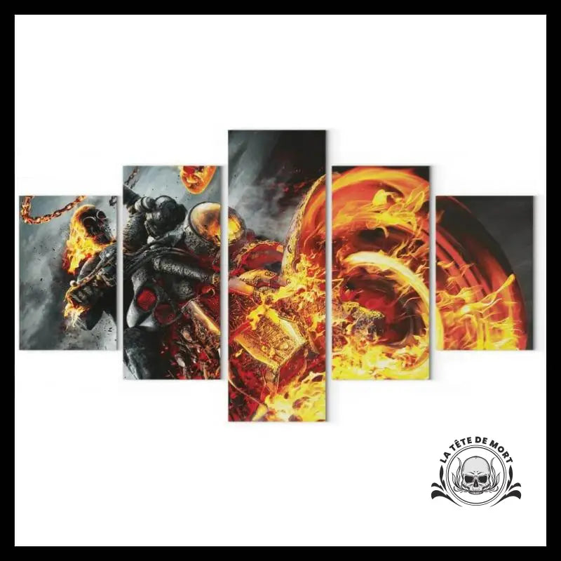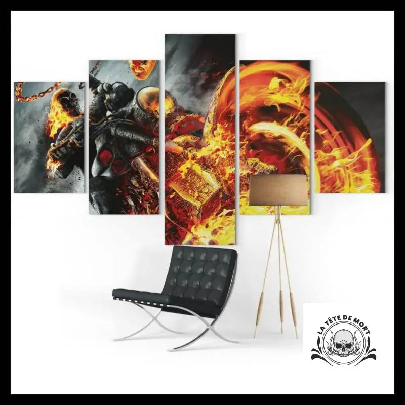 Ajoute une touche saisissante à ton espace personnel avec ce fascinant ensemble de tableaux biker en 5 parties représentant le Ghost Rider ! "Laisse derrière toi les amis, la famille et même l'amour. Tu seras désormais un rider pour l'éternité".