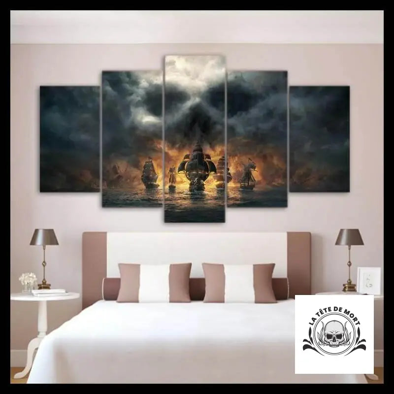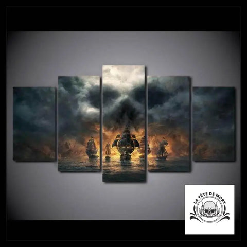 Pentaptyque tête de mort pirate. Triptyque tête de mort nuage.