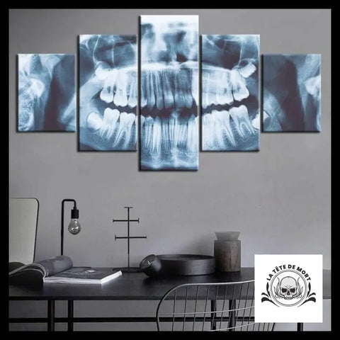 Pentaptyque tête de mort dent. Triptyque tête de mort cabinet dentaire. Tableau tête de mort racine.
