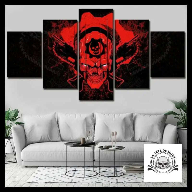 Ajoute une touche de danger à ton espace de vie avec ce fascinant tableau représentant une tête de mort armée. La citation "Une guerre est juste quand elle est nécessaire" ajoute une dimension supplémentaire à ce décor déjà captivant.