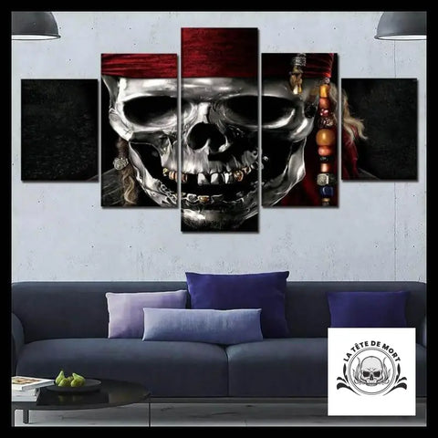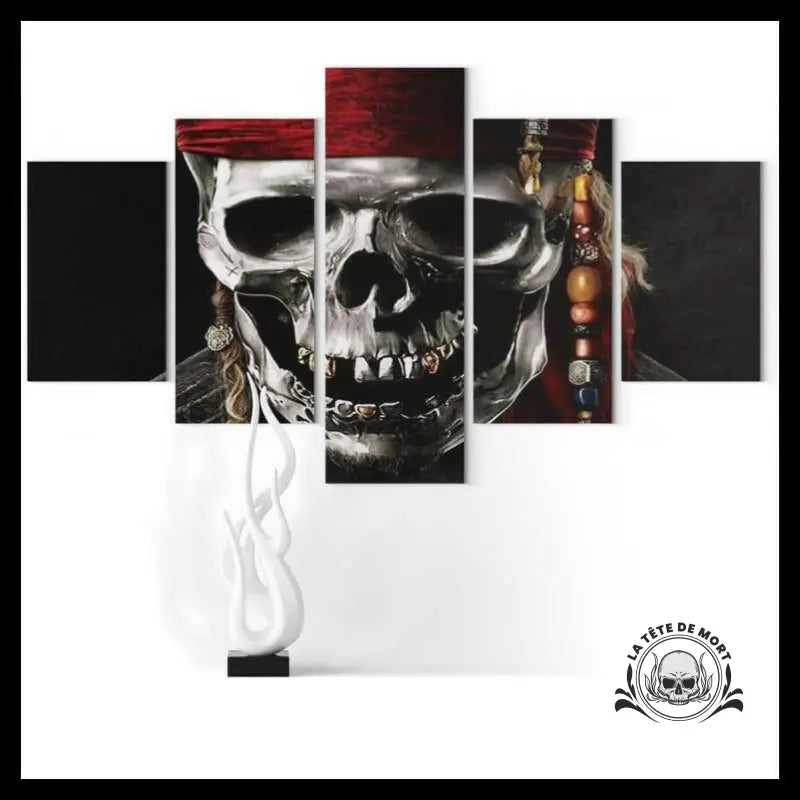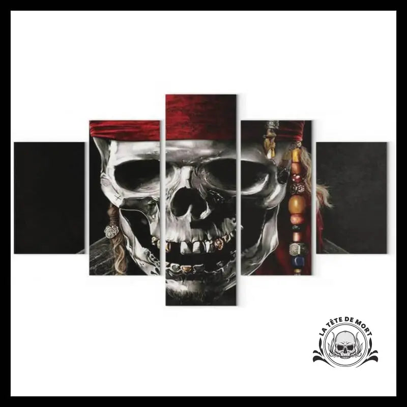 Ajoute une touche d'aventure à ta pièce avec ce magnifique ensemble de 5 tableaux de pirate. "Le pirate des mers n'est rien de plus qu'un marin qui se transforme en loup pour ceux qui naviguent."