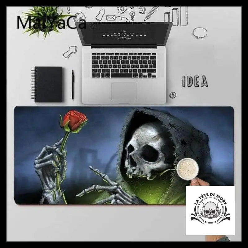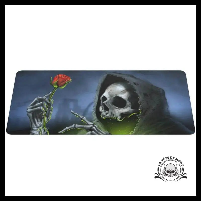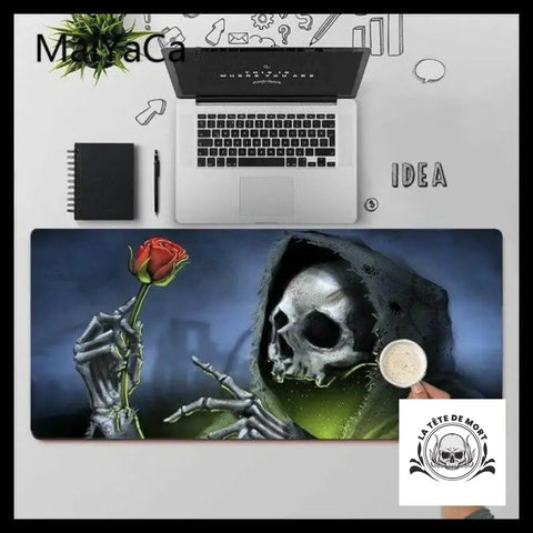 Découvre notre tapis de souris à l'apparence effrayante de faucheuse, parfait pour ajouter une touche macabre à ton espace de travail. Il sera le centre d'attention sur ton bureau.