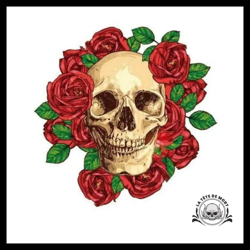 Une tête de mort ornée de roses exprime une grande joie. Entourée d'une variété de roses, cette image peut être facilement transférée sur vos vêtements ou accessoires pour un look original et audacieux. Transformez vos tenues avec ce motif unique et remarquable.